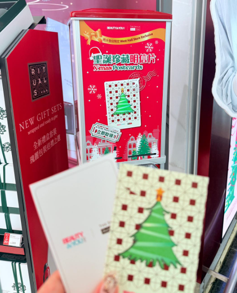 截至2026年1月5日,店内还有多重互动惊喜:东大厅南区、北区门店外,圣诞礼物车定期巡游,找到礼物车就能领取“圣诞礼盒”兑换卡,进店兑换专属小礼物;东大厅南区、北区、西大厅等多家门店设有明信片扭卡机,免费参与即可获得限定明信片,共有八款样式,集卡爱好者千万别错过。