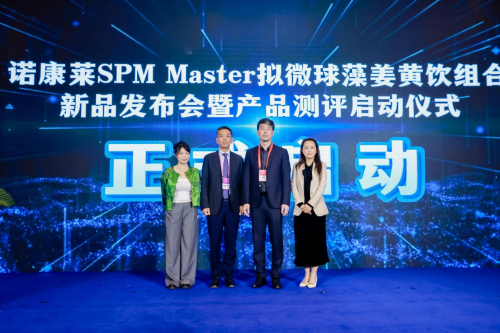 发布会迎来全场重要时刻 ——诺康莱 SPM Master 拟微球藻姜黄饮组合新品发布会暨产品测评启动仪式隆重举行。诺康莱CEO李建忠、一苇评测口服美容事业部总经理彭星桥博士、温州医科大学附属第二医院李挺教授、美年健康集团产品中心副总经理刘丹妍博士共同上台见证,标志着产品正式迈入高标准、严规范、可溯源的临床实证阶段,实现从 “科研成果”到“临床验证”的关键跨越,为市场推广、渠道合作及消费者信任提供硬核科学依据。