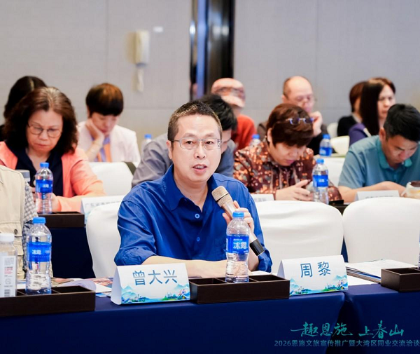 3月27日,由恩施州文化和旅游局主办的“趣恩施 上春山”2026恩施文旅宣传推广暨大湾区同业交流洽谈会在广州举行。会议旨在进一步加强恩施与湾区旅游业界的对接合作,精准链接湾区客源资源,通过面对面交流,倾听业界声音,共拓旅游市场,共商发展路径。恩施州文化和旅游局局长张伟、广州市文化广电旅游局一级调研员杨华参加活动。来自穗恩两地重点文旅企业齐聚一堂,展开深度交流,共绘合作蓝图。